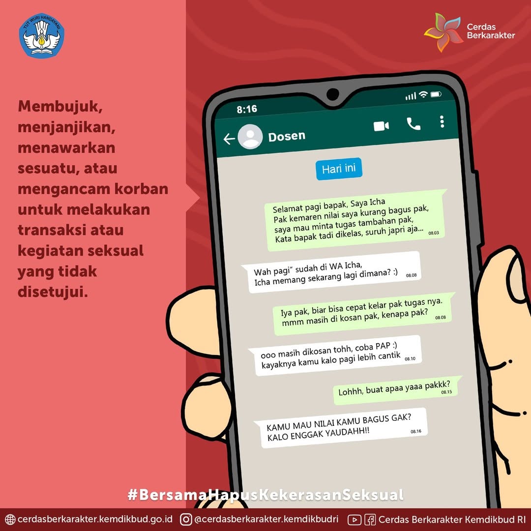 - sosialisasi layanan atau kanal pelaporan kekerasan seksual secara rutin.