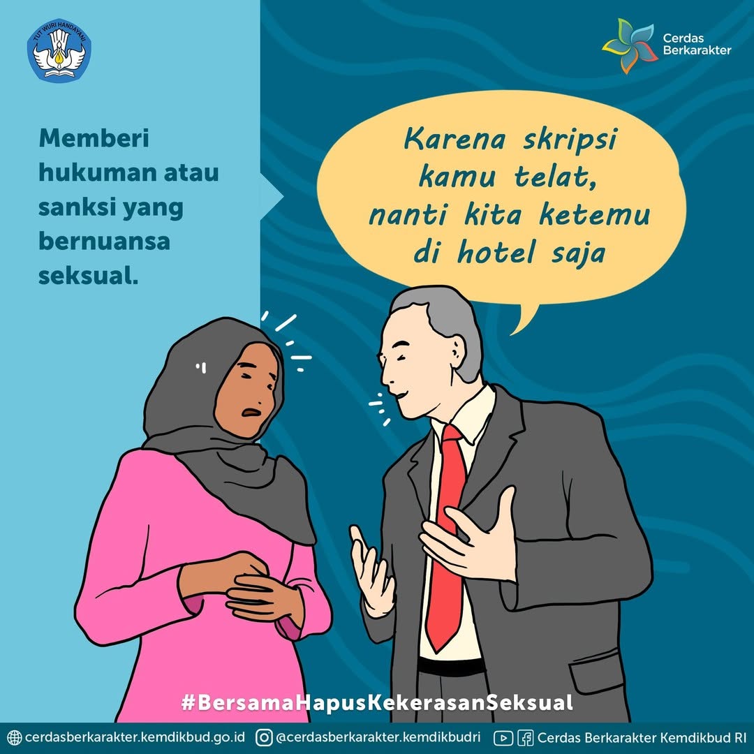 - Edukasi pencegahan dan penanganan kekerasan seksual melalui kegiatan seminar, webinar, diskusi publik, dan/atau aktivitas lainnya.