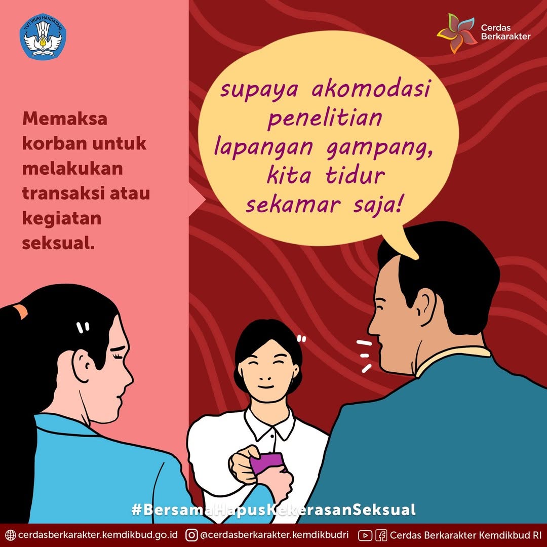 - Edukasi pencegahan dan penanganan kekerasan seksual melalui kegiatan seminar, webinar, diskusi publik, dan/atau aktivitas lainnya.